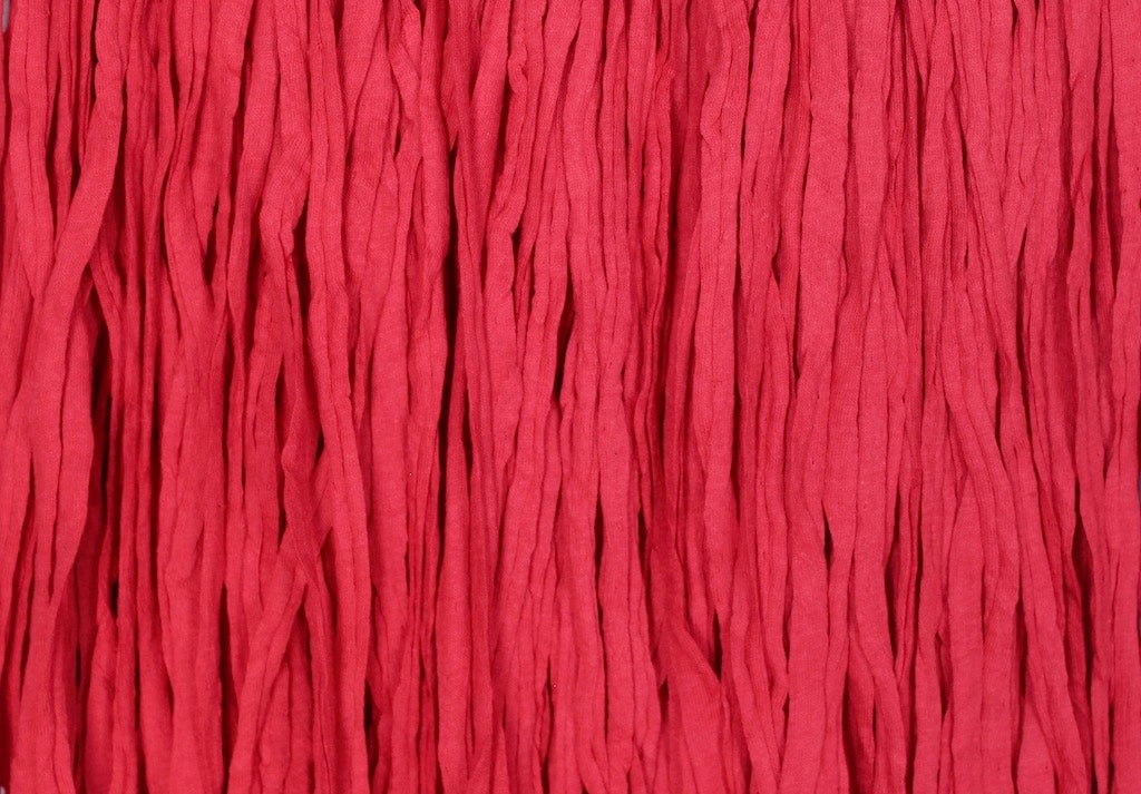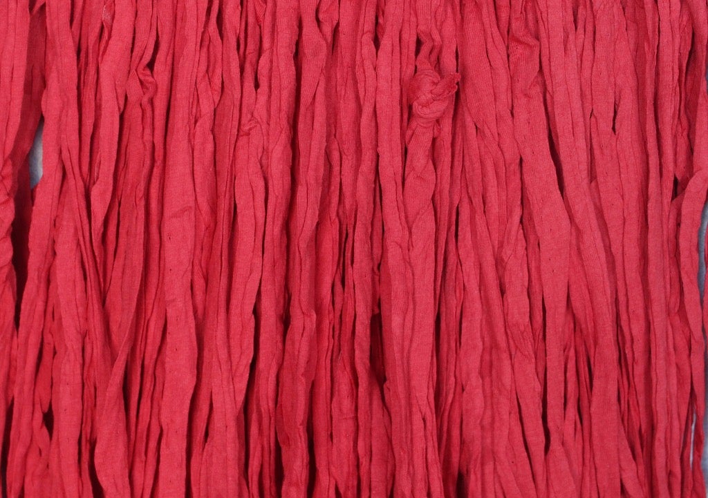 Käyttövalmis trikookude. Ei värjää, ei kutistu. Trikookude on tekstiiliteollisuuden sivutuotetta. Siitä johtuen vyyhdeissä voi olla solmuja ja kuteiden vahvuus saattaa vaihdella. Myynnissä on eri värejä, erikokoisissa vyyhdeissä.